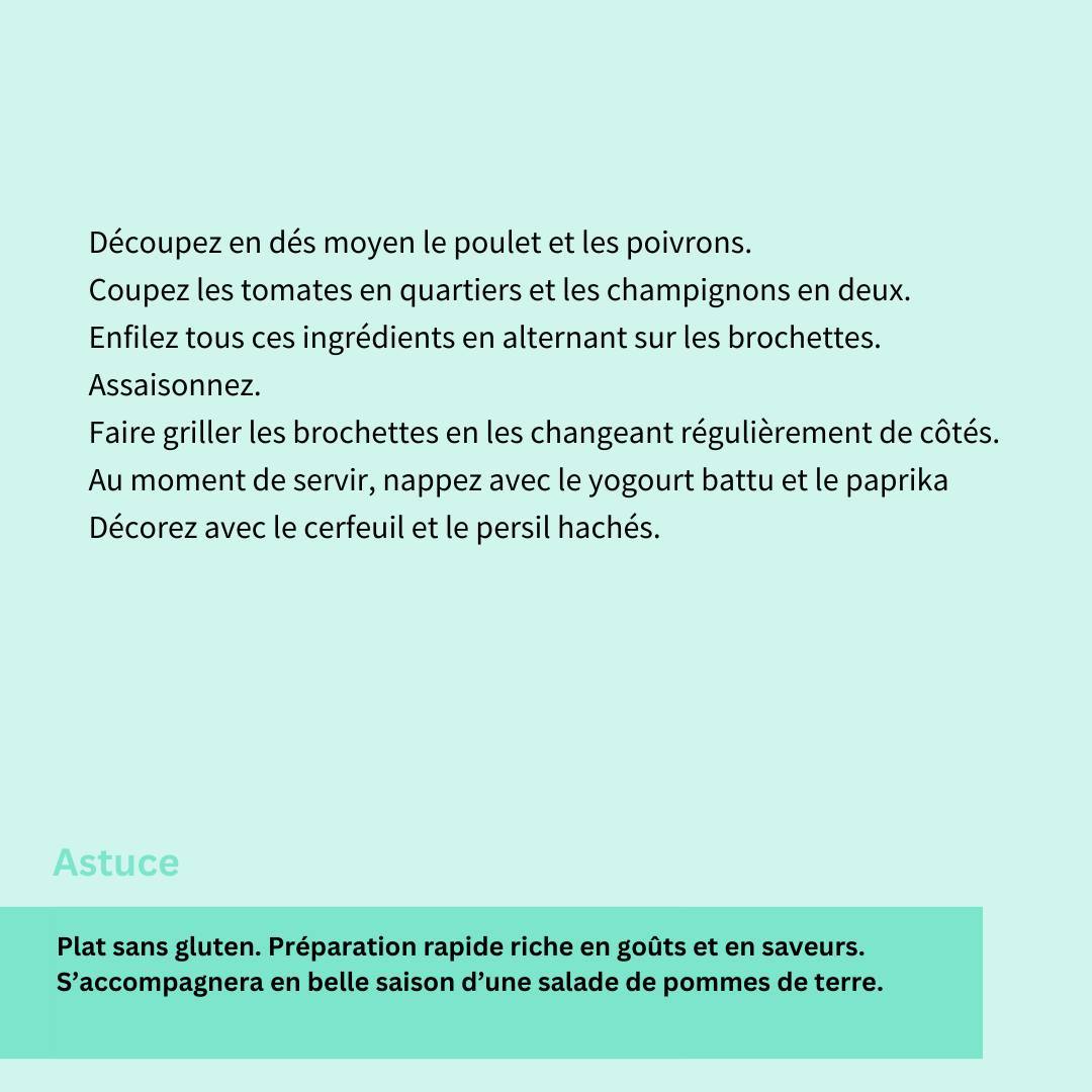 Enfilez tous ces ingrédients en alternant sur les brochettes.