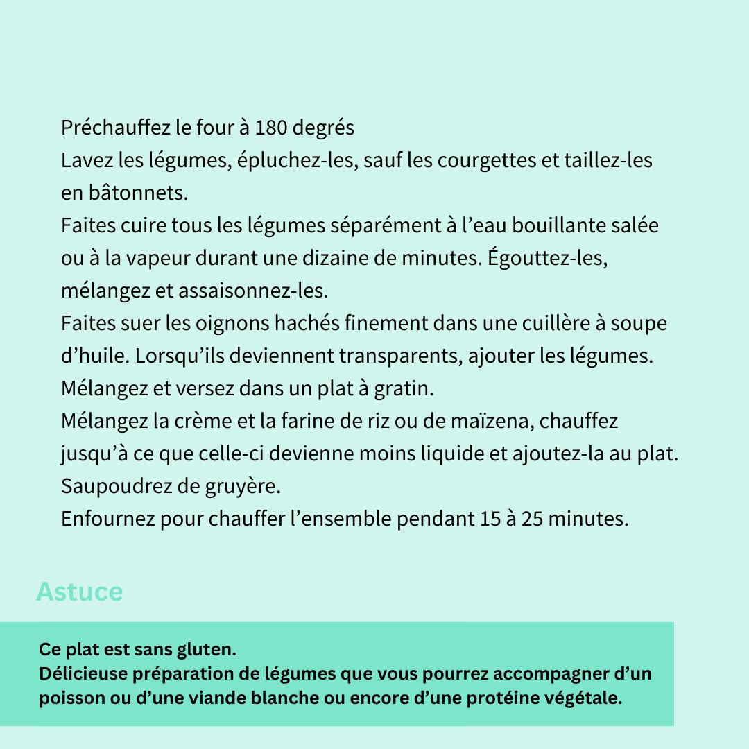 Délicieuse préparation de légumes que vous pourrez accompagner d’un poisson ou d’une viande blanche ou encore d’une protéine végétale.