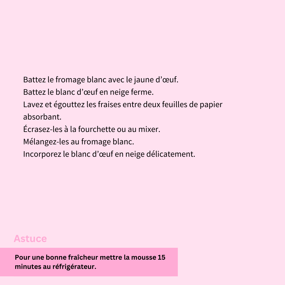 Pour une bonne fraîcheur mettre la mousse 15 minutes au réfrigérateur.