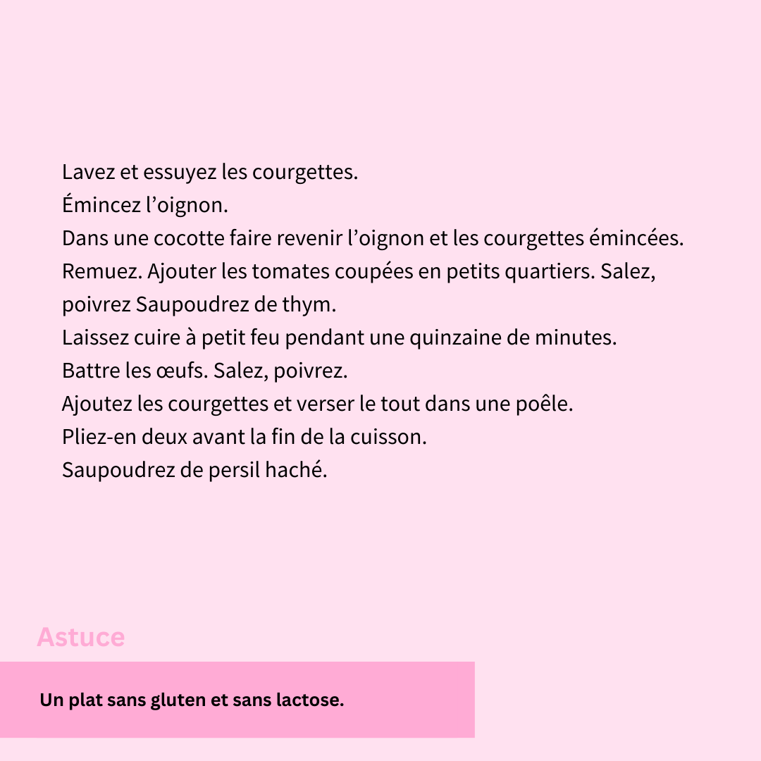 Un plat sans gluten et sans lactose.